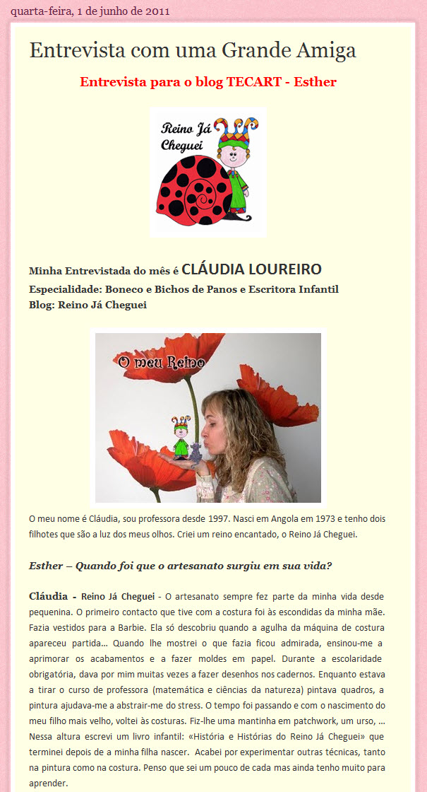 Entrevista dada ao Blog Tecart Esther